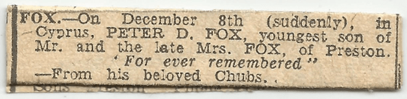 I know all this, because Molly Williams was my mother. And Peter Donald Fox her fiancé, murdered by a terrorist in Cyprus in 1956. An event which changed her life forever.