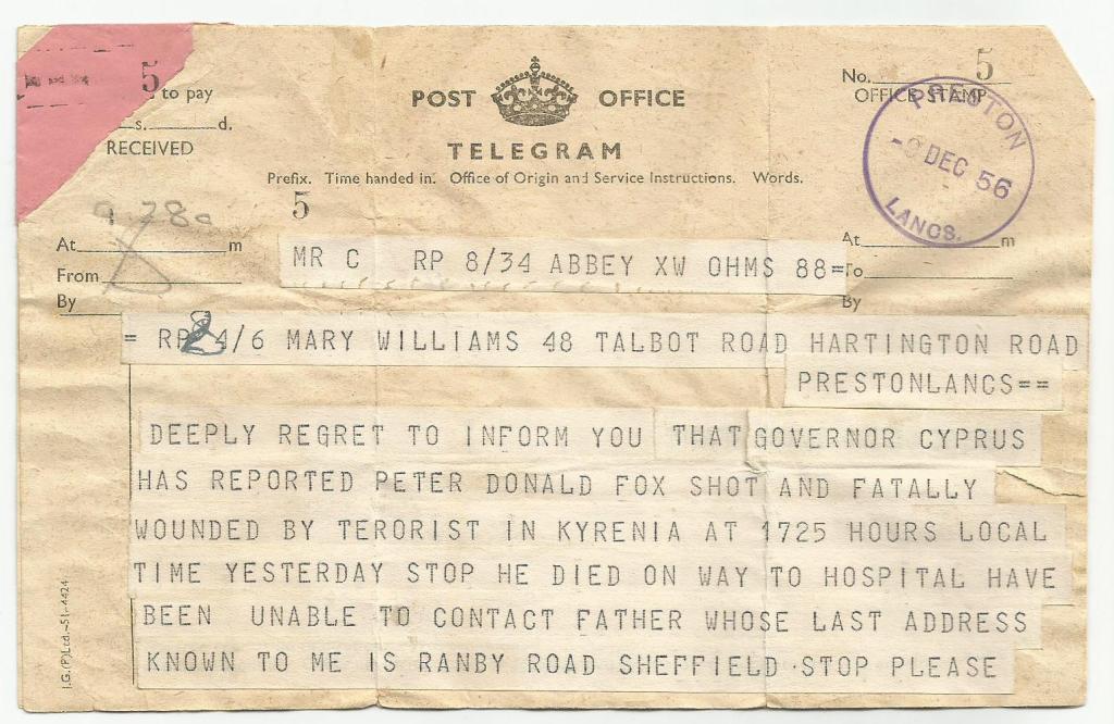 So here’s that fated telegram that my mother received, on the day that changed her life forever.